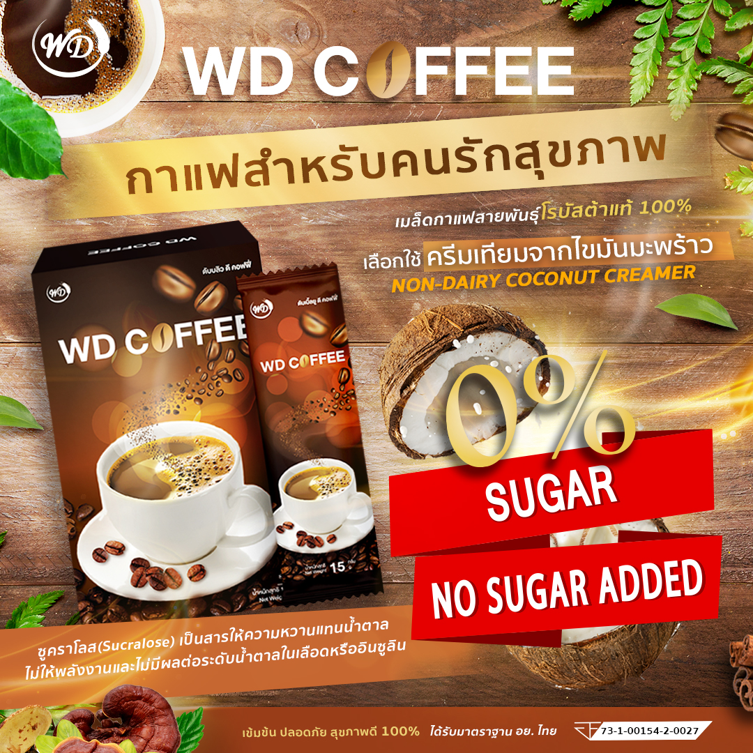 กาแฟผสมสารสกัดสมุนไพร WD COFFEE เหมาะสำหรับ ผู้ป่วยเบาหวานและผู้ที่ต้องการควบคุมน้ำหนัก